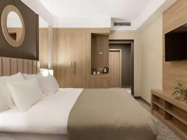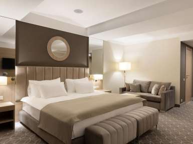 Мебель в номерах установлена премиального класса. Есть сейф, телевизор, чайная станция с травяными чаями бренда, телефон, предоставляется беспроводной интернет посредством Wi-Fi. Установлена система кондиционирования. При желании можно выбрать жесткость ортопедического матраса на кровати, подушку. В ванной комнате установлена душевая, имеются экологические средства гигиены. Ежедневно проводится сухая и влажная уборка номеров. Обеспечение максимально комфортного пребывания в санатории - одна их главных задач в санатории Майерведа. Проживание в medispa-отеле доступно для гостей с 18 лет.
